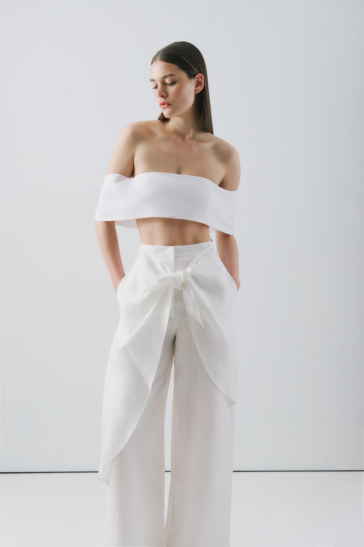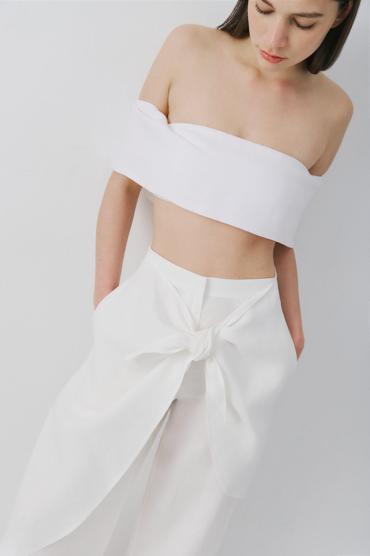 SELMACILEK Kahverengi Straplez Üst Spring26 koleksiyonu için elle dikilmiştir.