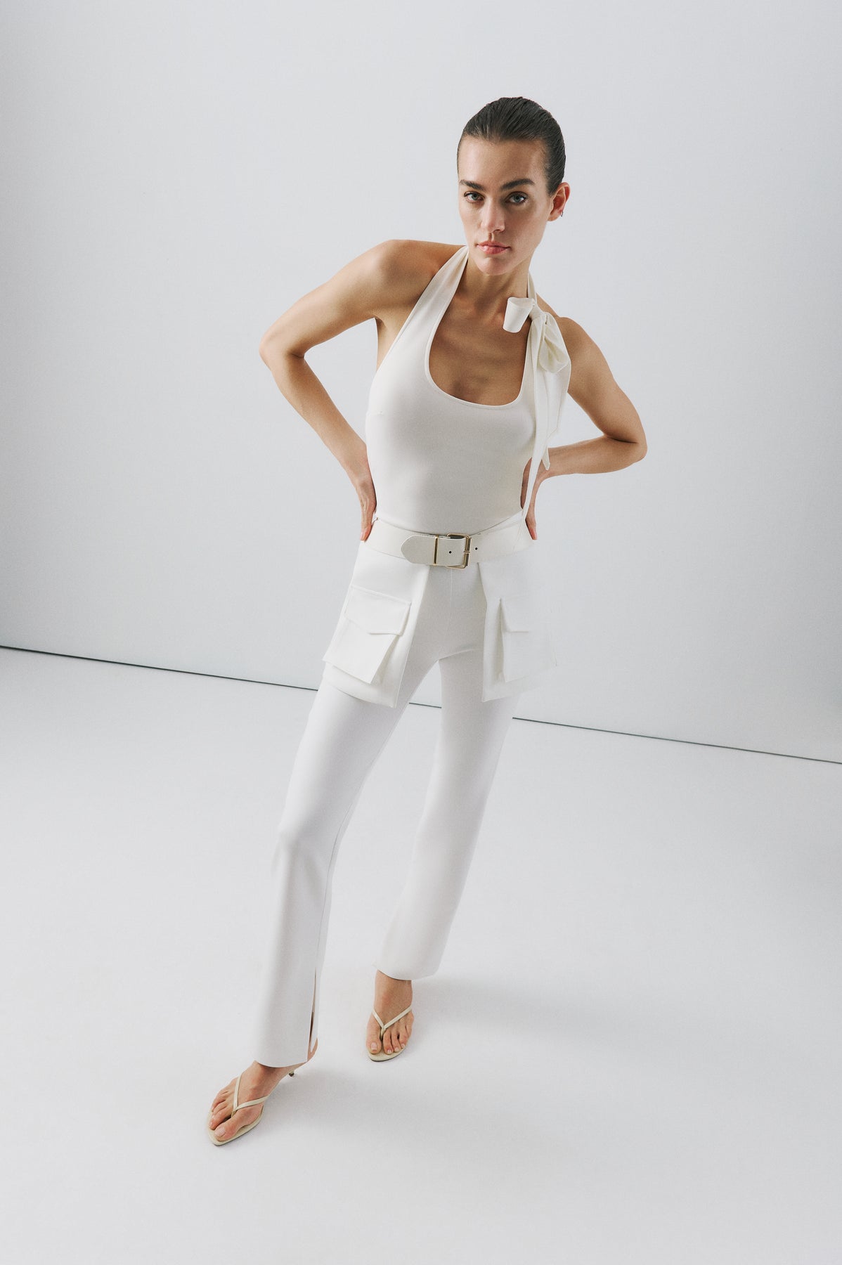 SELMACILEK Ecru Boyundan Bağlama Detaylı Bluz Spring2026 koleksiyonu için elle dikilmiştir.