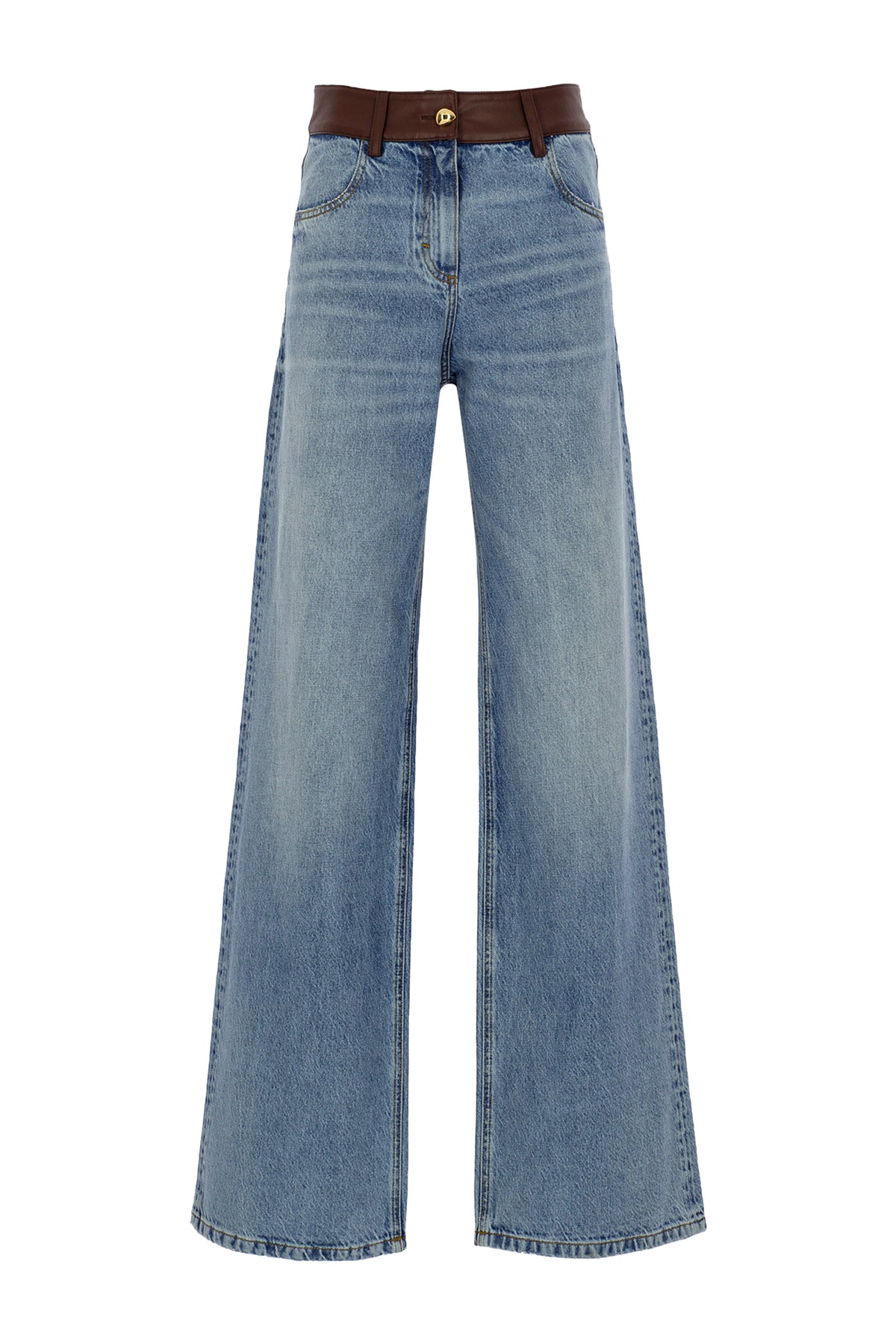 SELMACILEK Kahverengi Deri Bel Detaylı Denim Pantolon FW25/26 koleksiyonu için elle dikilmiştir.