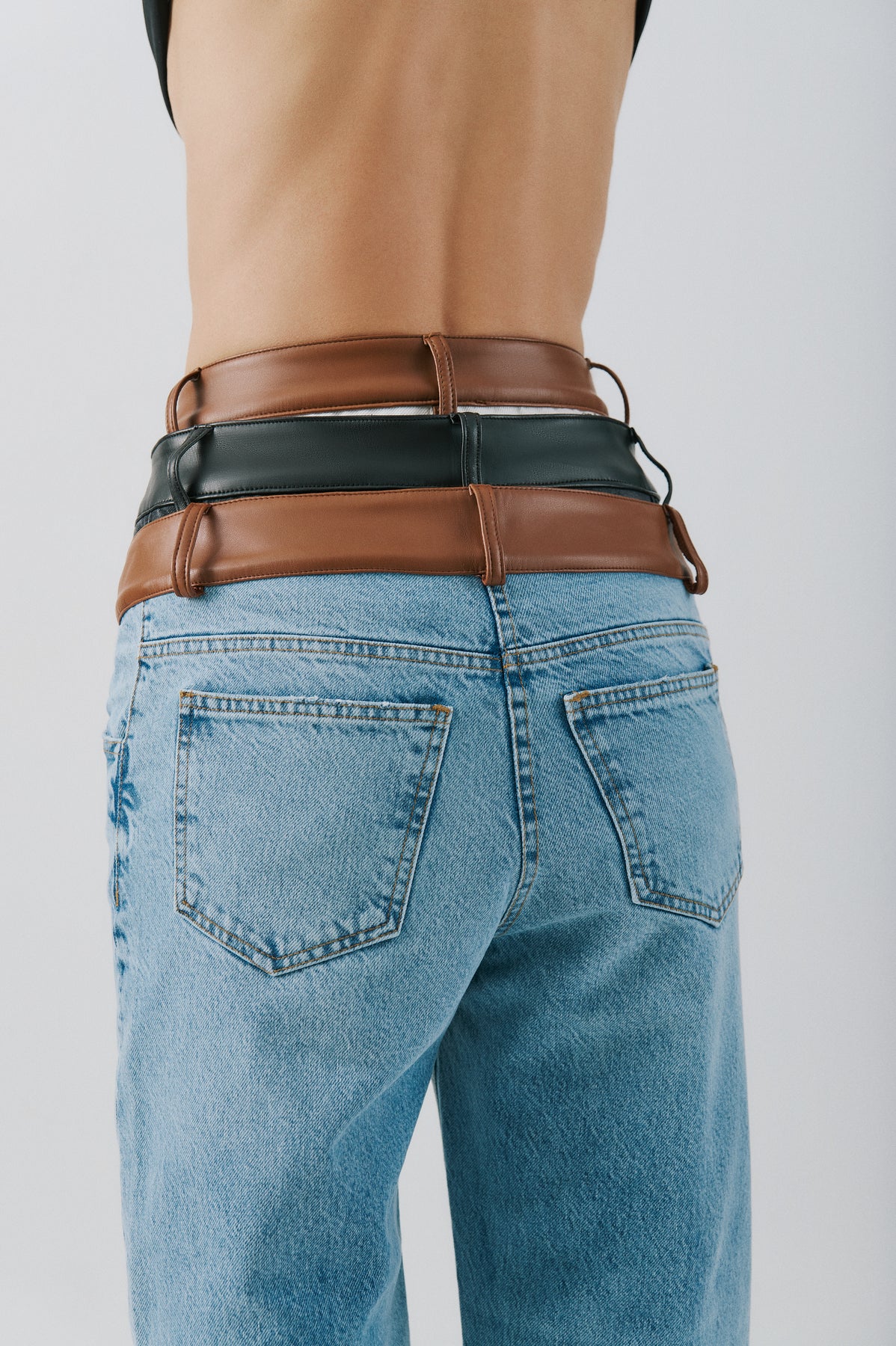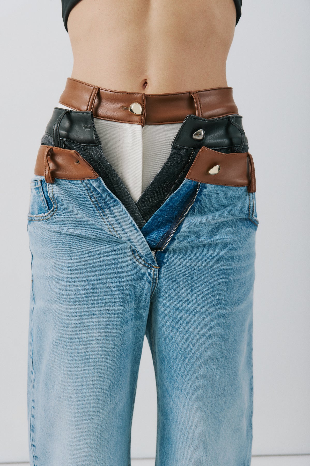 SELMACILEK Siyah Deri Bel Detaylı Antrasit Denim Pantolon Spring26 koleksiyonu için elle dikilmiştir.