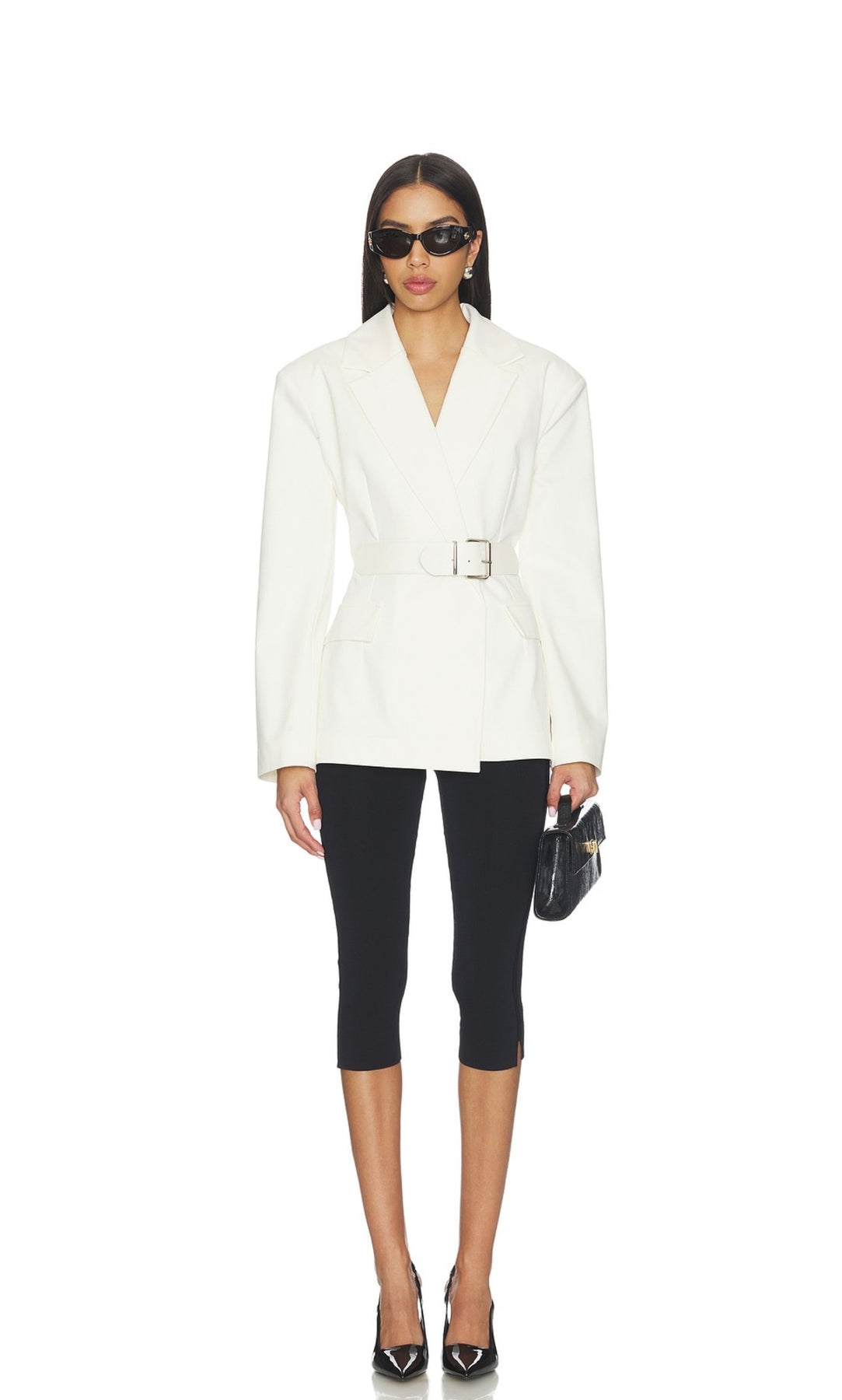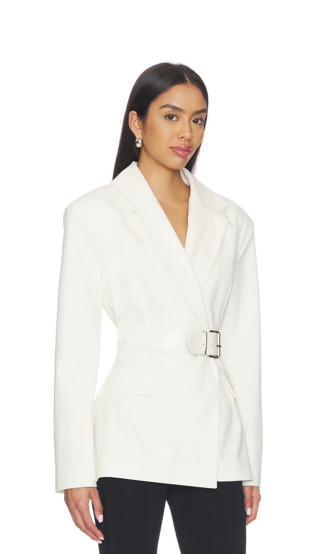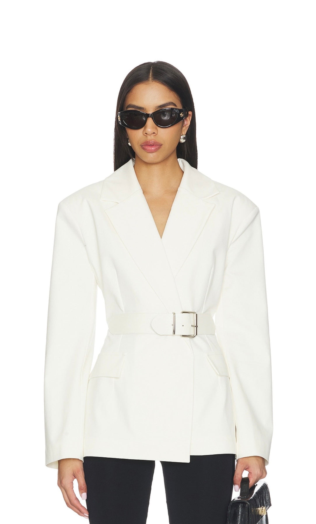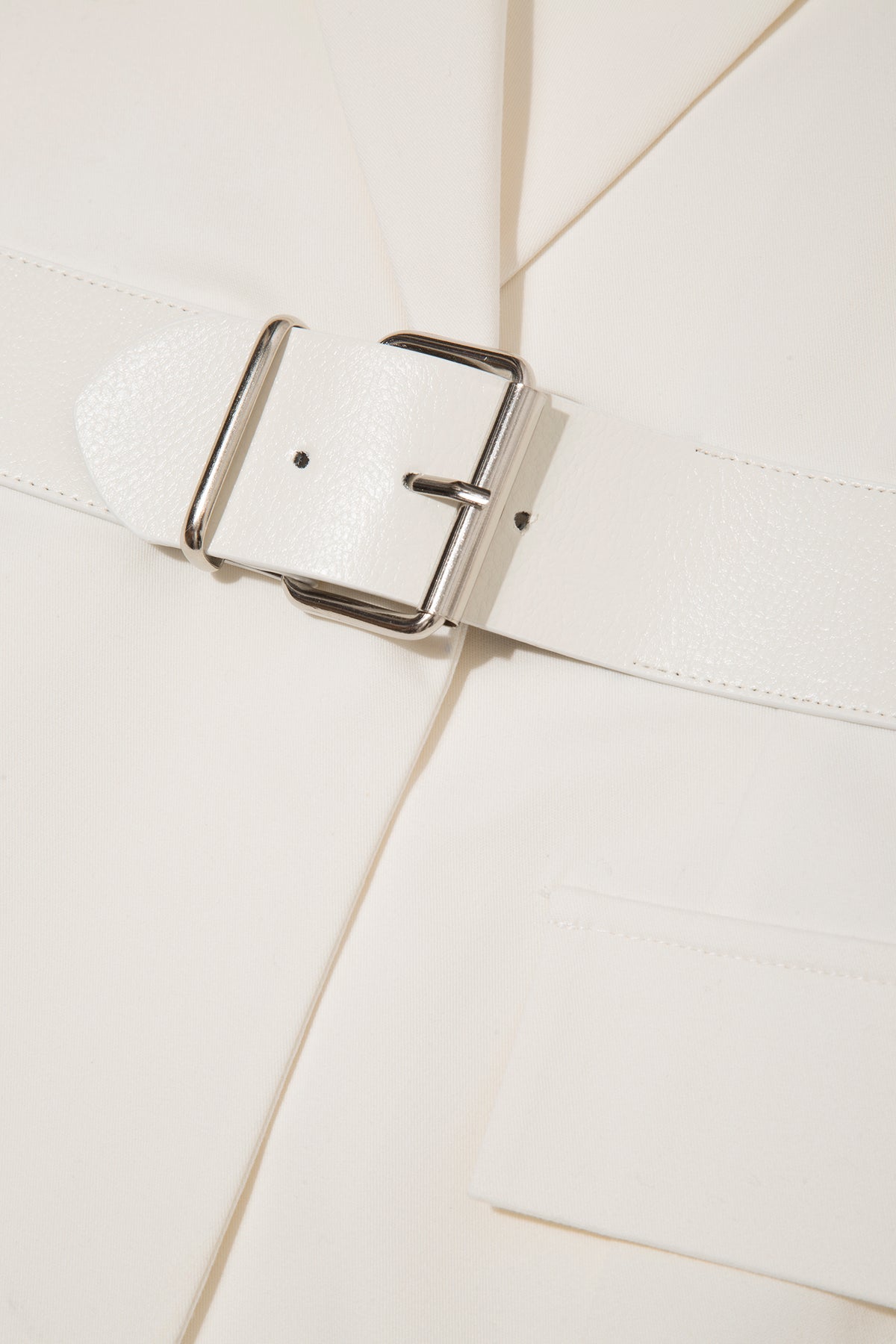 SELMACILEK Ekru Belden Kemer Detaylı Blazer Ceket Spring26 koleksiyonu için elle dikilmiştir.