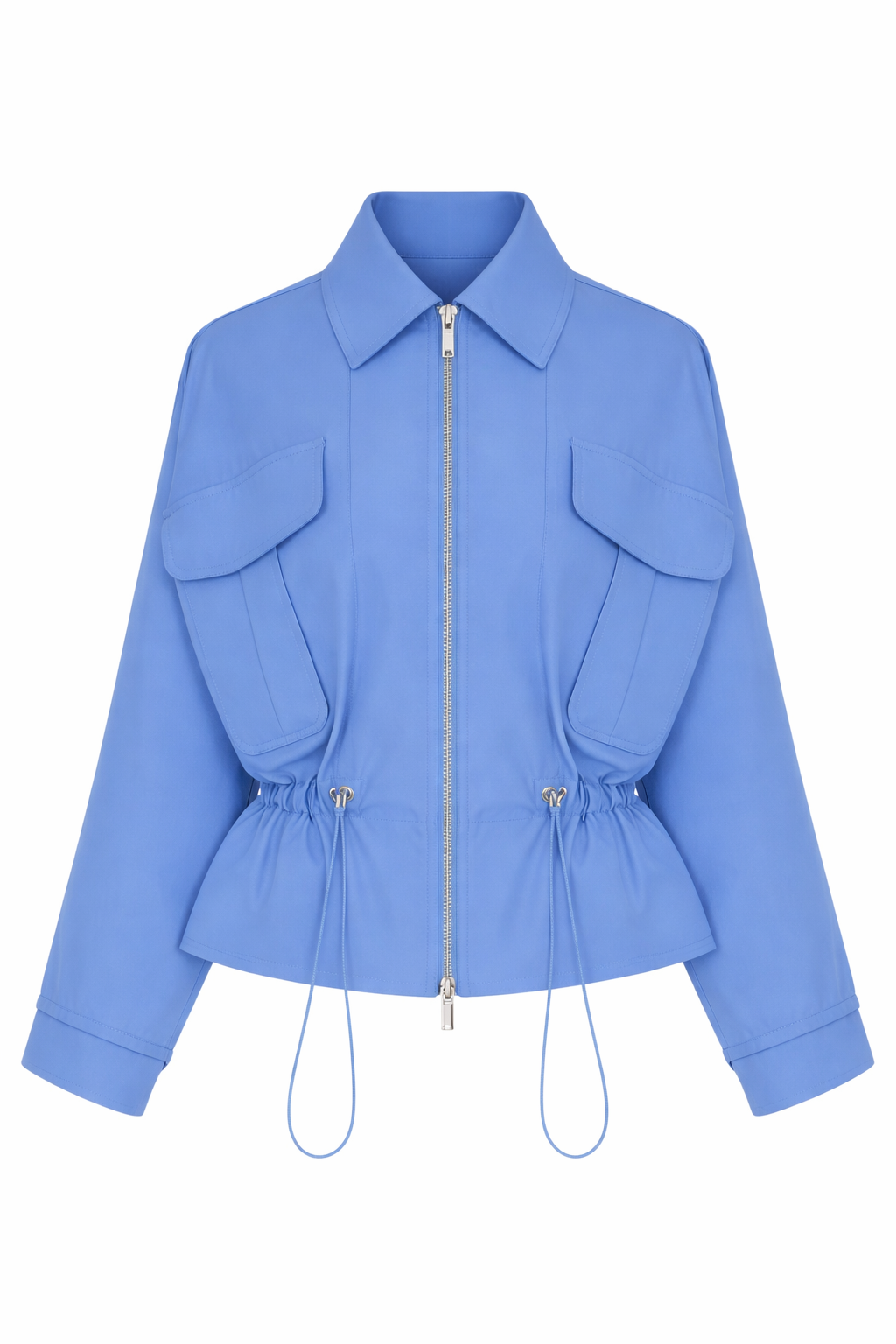 SELMACILEK Belden Büzgülü Mavi Ceket Spring26 koleksiyonu için elle dikilmiştir.