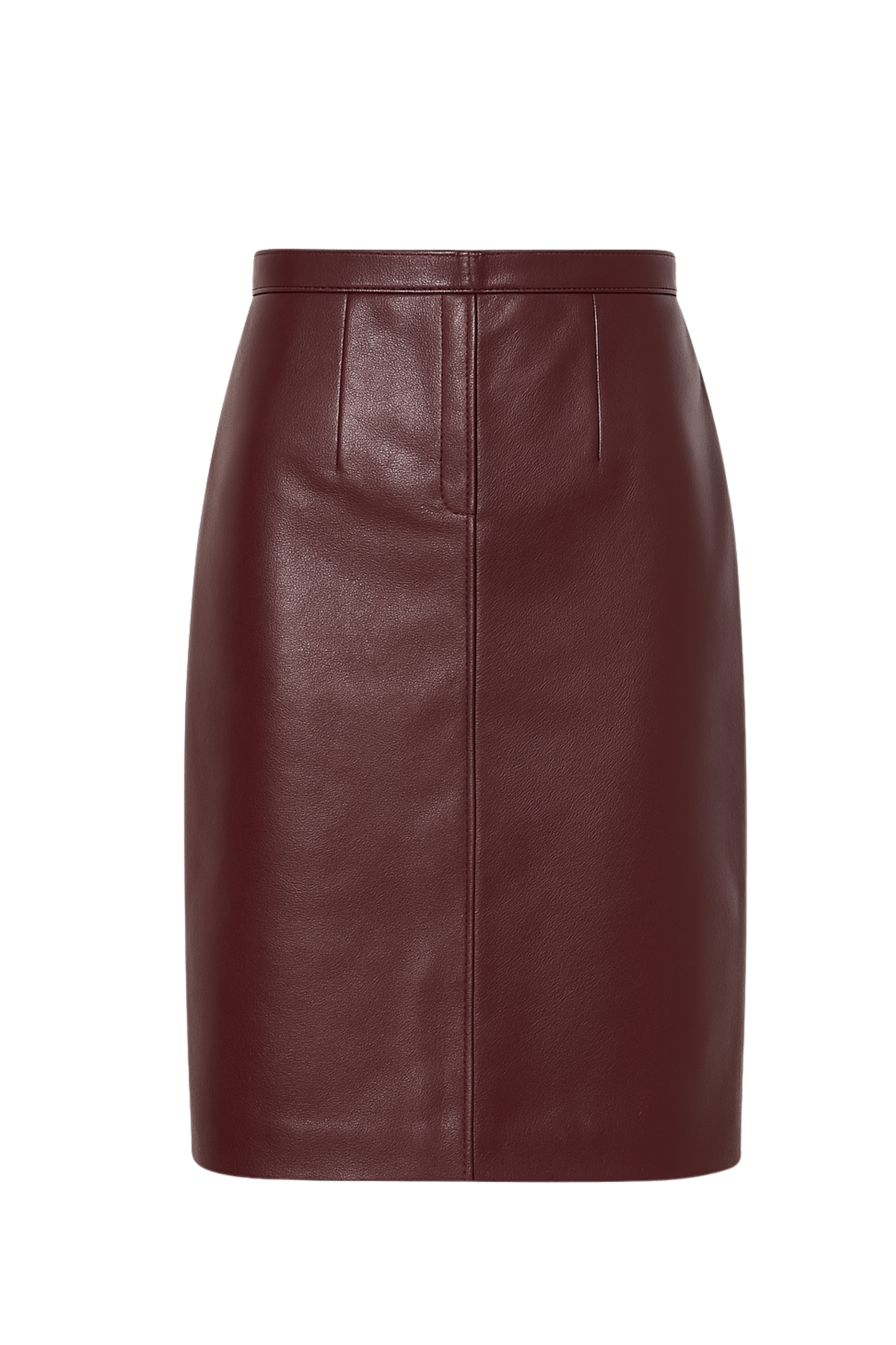 SELMACILEK Bordo Deri Midi Etek FW25/26 koleksiyonu için elle dikilmiştir.
