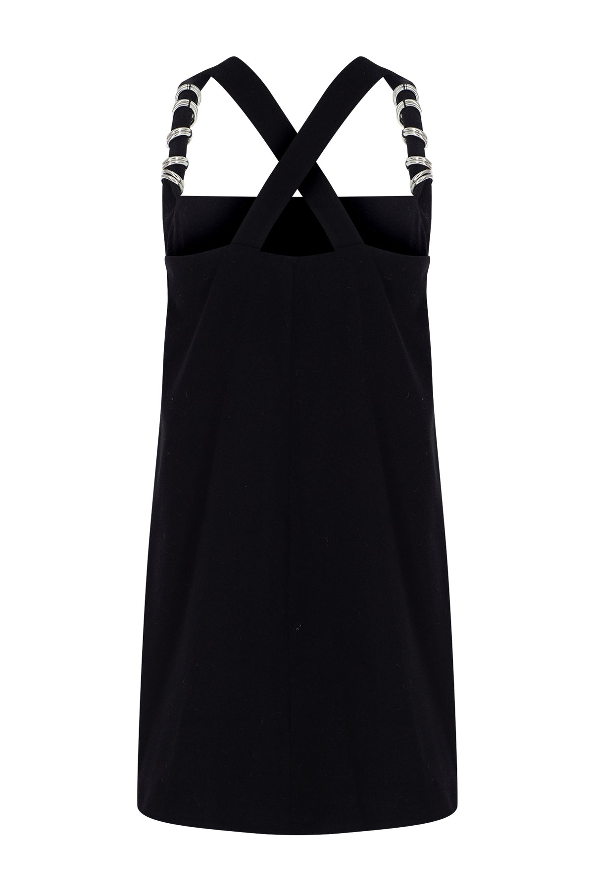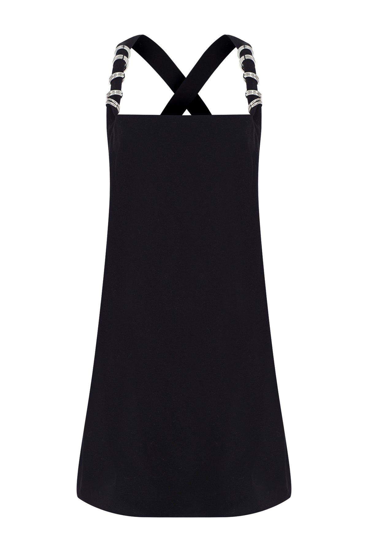 SELMACILEK Siyah Kare Yaka Aksesuar Detaylı Mini Elbise FW25/26 koleksiyonu için elle dikilmiştir.