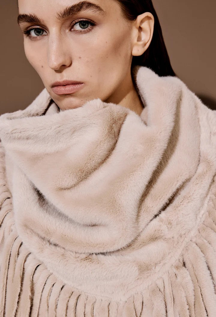 SELMACILEK Bej Püsküllü Boyundan Şal Detaylı Bomber Ceket FW25/26 koleksiyonu için elle dikilmiştir.