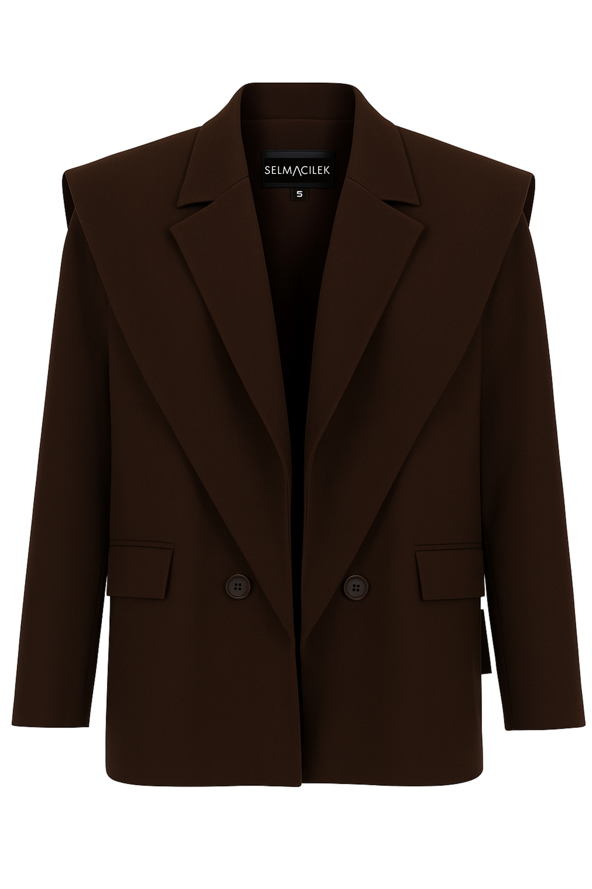 SELMACILEK KAHVERENGİ OMUZ DETAYLI BLAZER CEKET Sonbahar/Kış 2025 koleksiyonu için elle dikilmiştir.