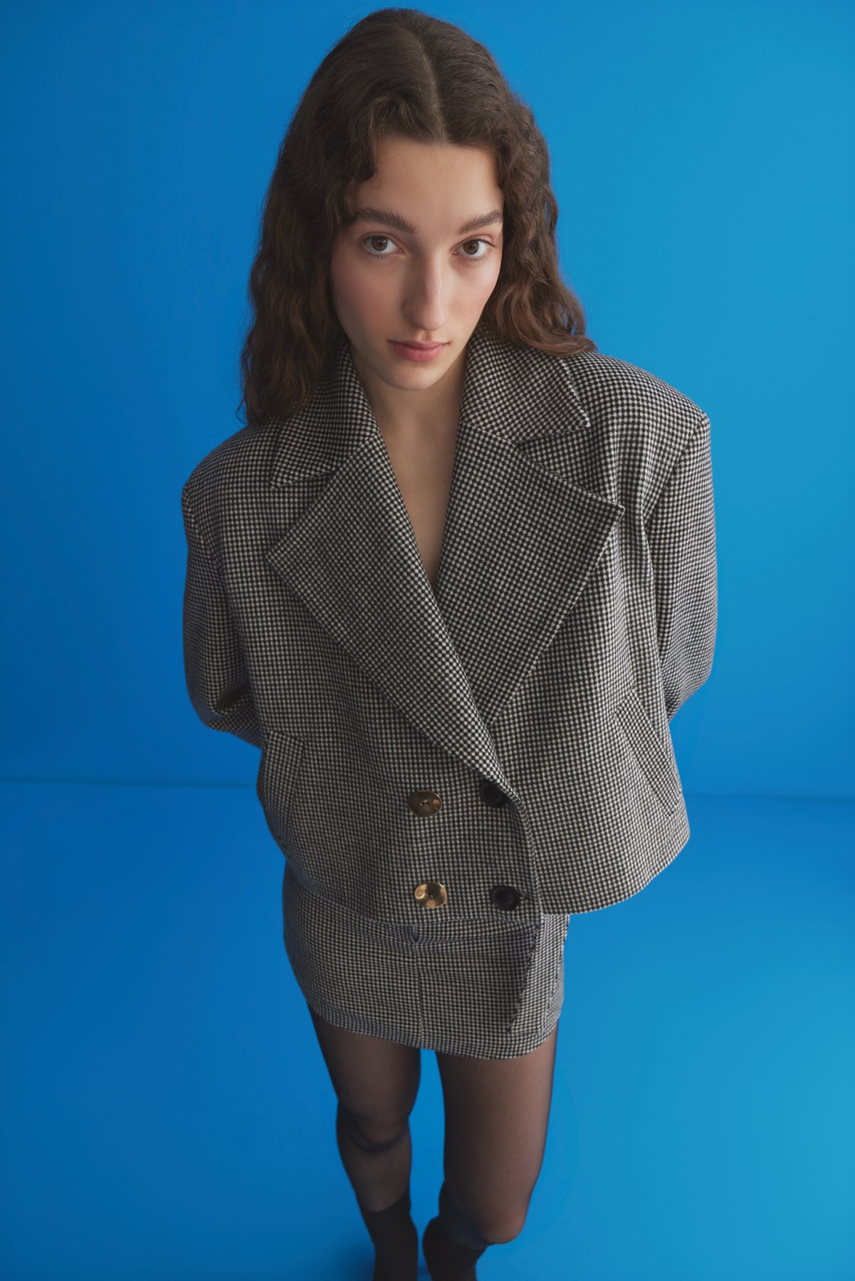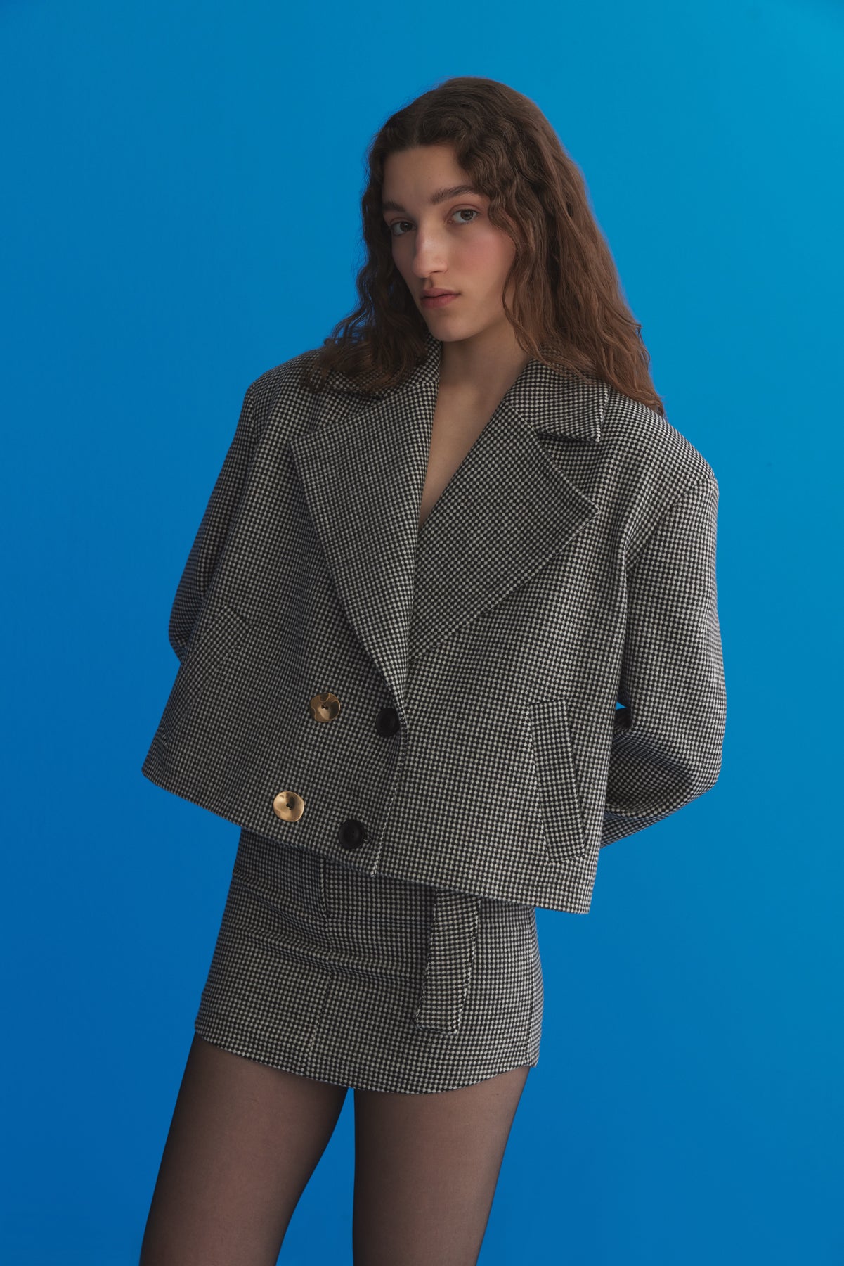 SELMACILEK Kareli Kemer Detaylı Kaşe Mini Etek FW24/2516000 koleksiyonu için elle dikilmiştir.