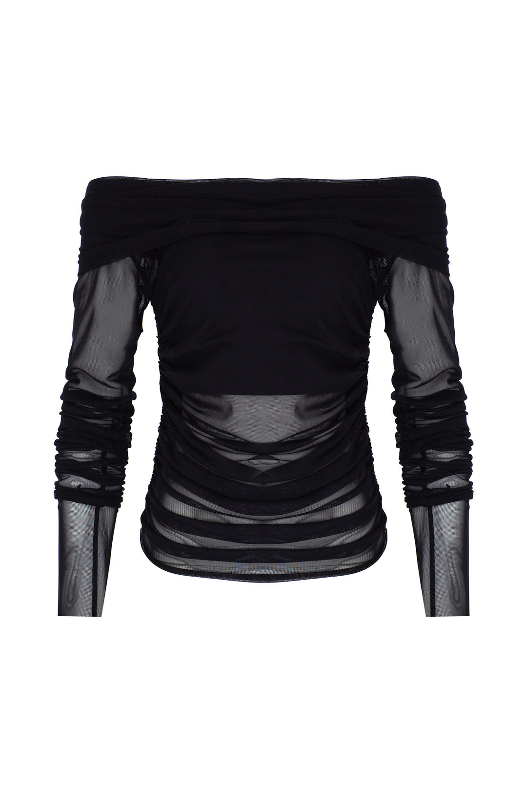 SELMACILEK Beyaz Straplez Uzun Kollu Tül Bluz İlkbahar/Yaz 2025 koleksiyonu için elle dikilmiştir.