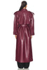 SELMACILEK Bordo Vegan Deri Uzun Trençkot SS25 koleksiyonu için elle dikilmiştir