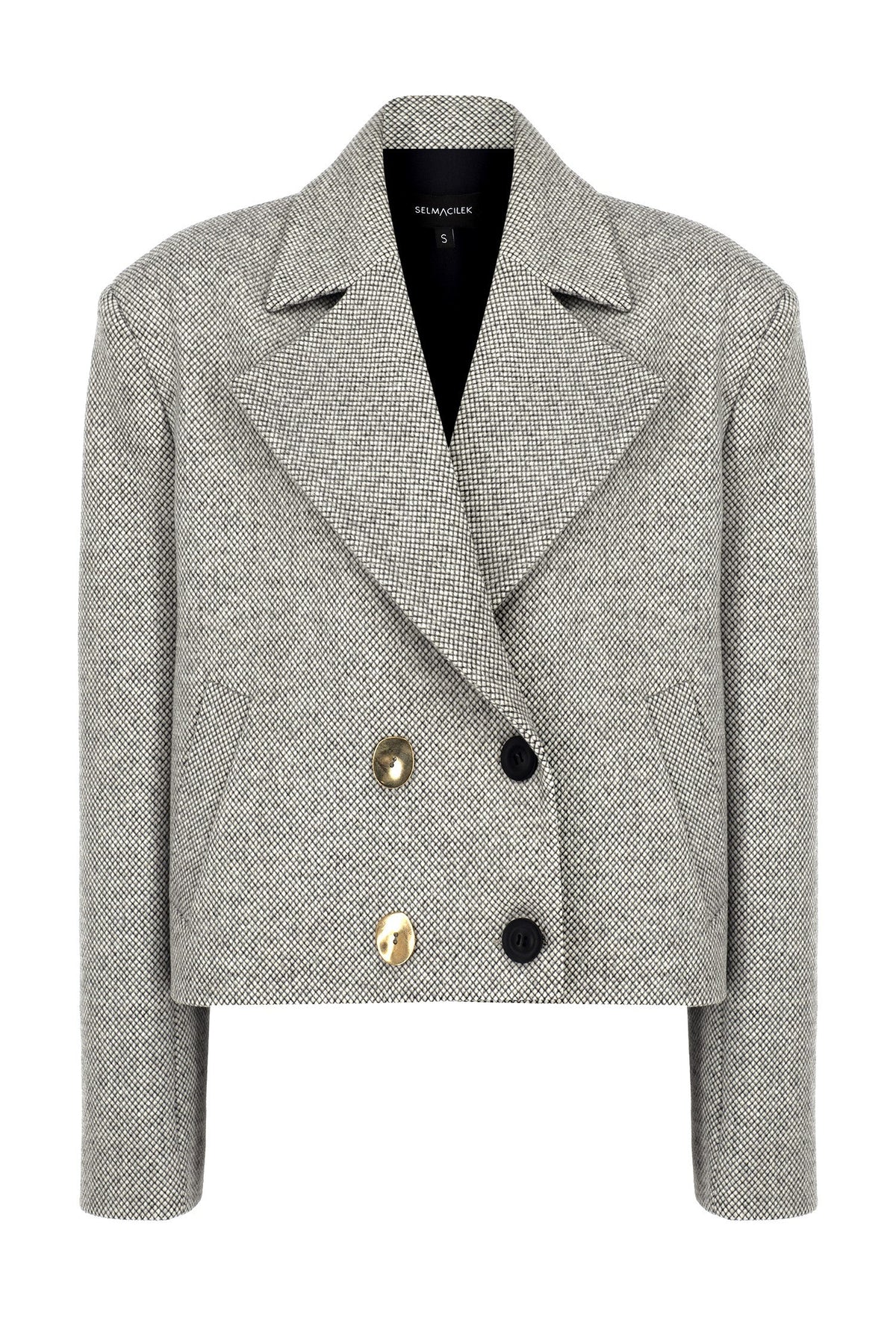 SELMACILEK Kareli Düğme Detaylı Kısa Ceket Ceket FW24/2516000 koleksiyonu için elle dikilmiştir.