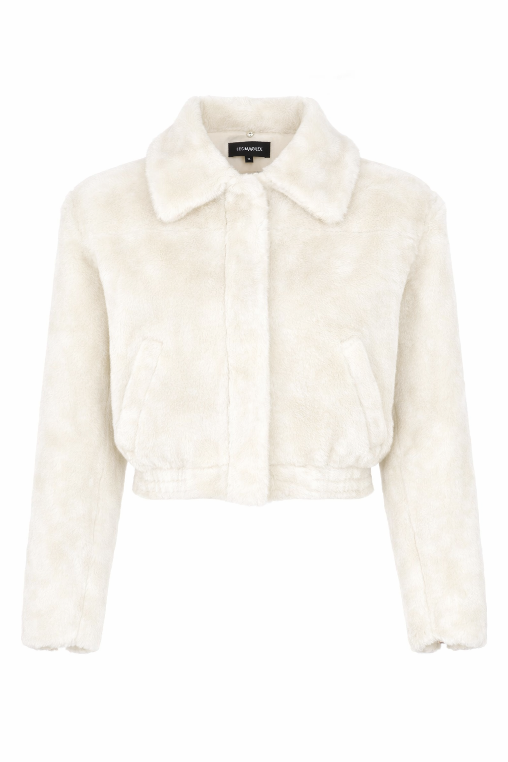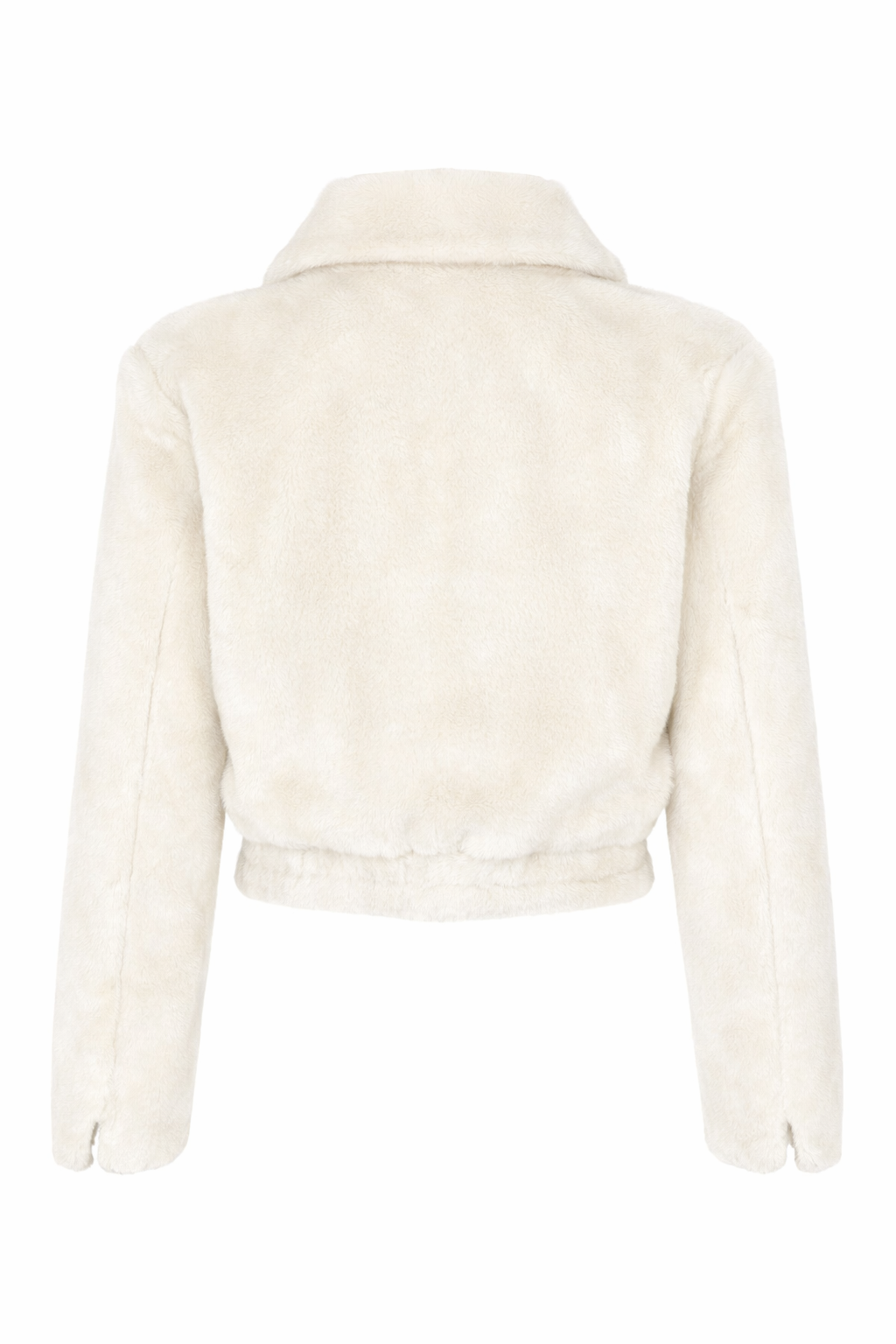 SELMACILEK EKRU SUNİ KÜRK ŞAL DETAYLI CEKET PreFall24 koleksiyonu için elle dikilmiştir.