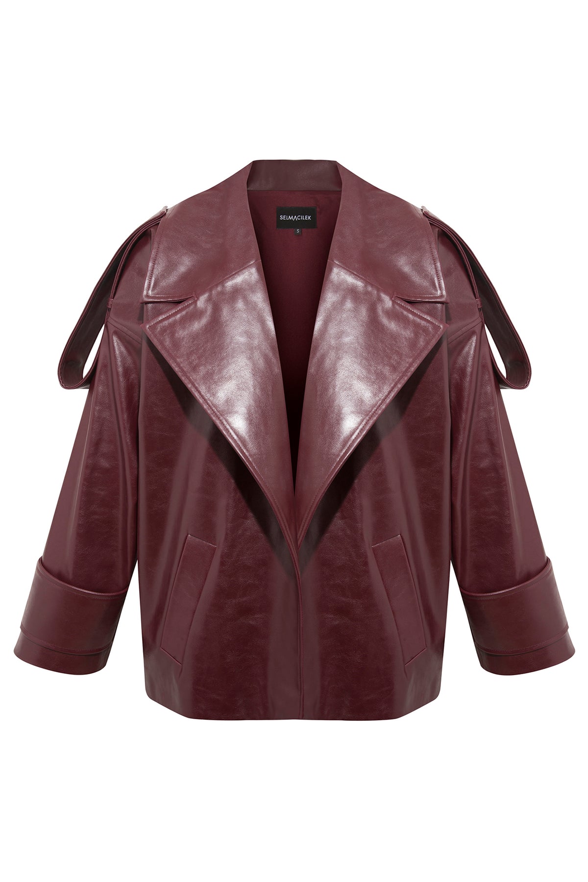 SELMACILEK BORDO VEGAN DERİ OVERSIZE CEKET  Prefall24 koleksiyonu için elle dikilmiştir.