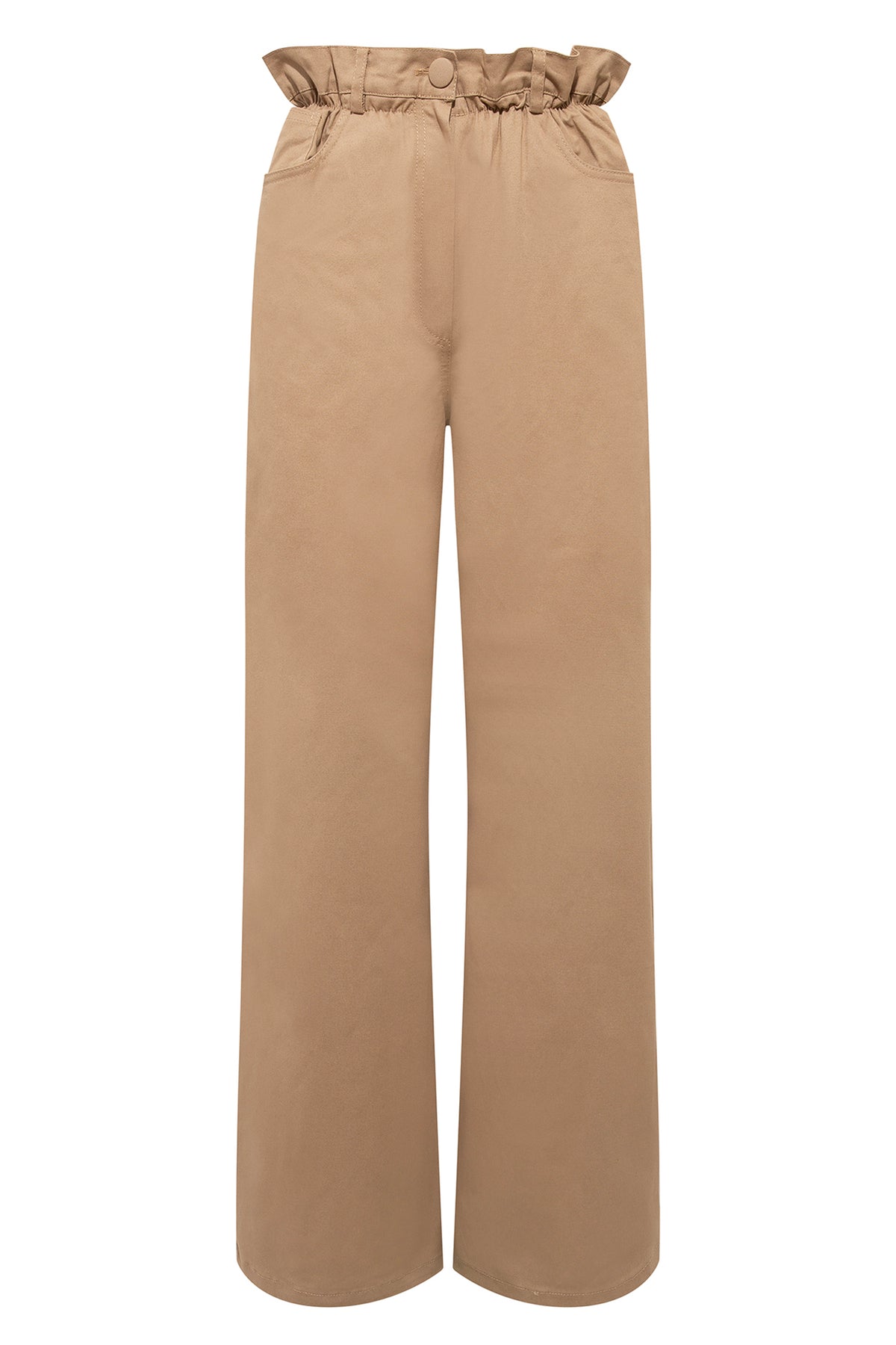 SELMACILEK Camel Bel Detaylı Kanvas Pantolon FW25/26 koleksiyonu için elle dikilmiştir.