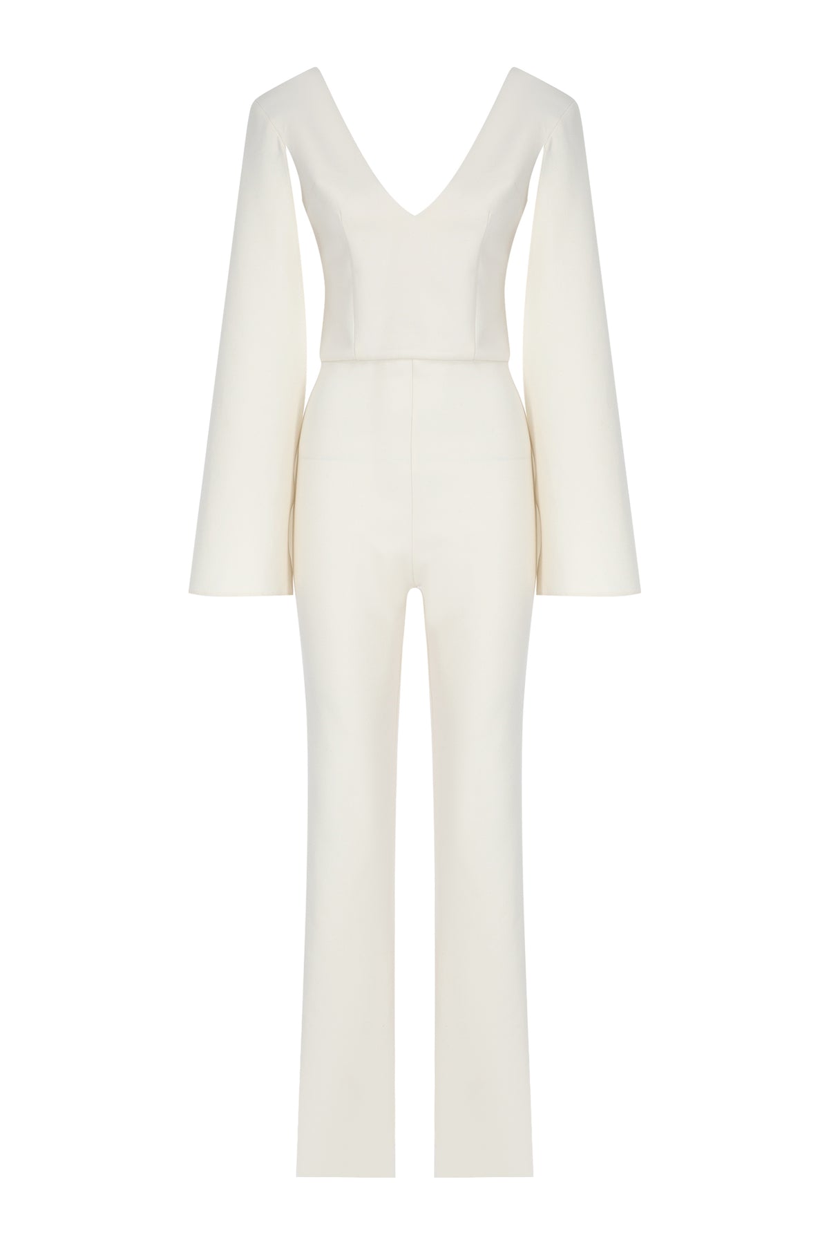 SELMACILEK Ekru Uzun Kollu Tulum FW25/26 koleksiyonu için elle dikilmiştir.