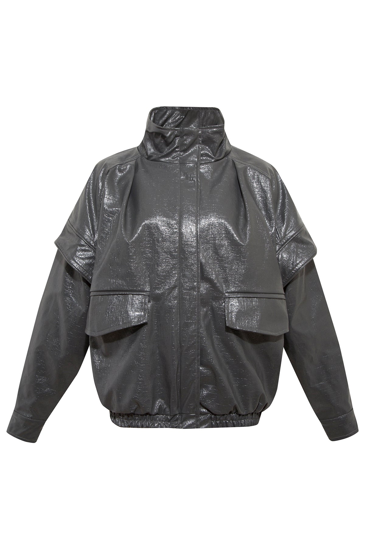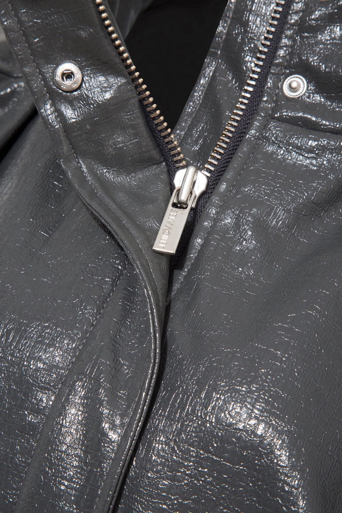 SELMACILEK Gri Kolları Çıkarılabilir Vegan Deri Ceket FW25/26 koleksiyonu için elle dikilmiştir.