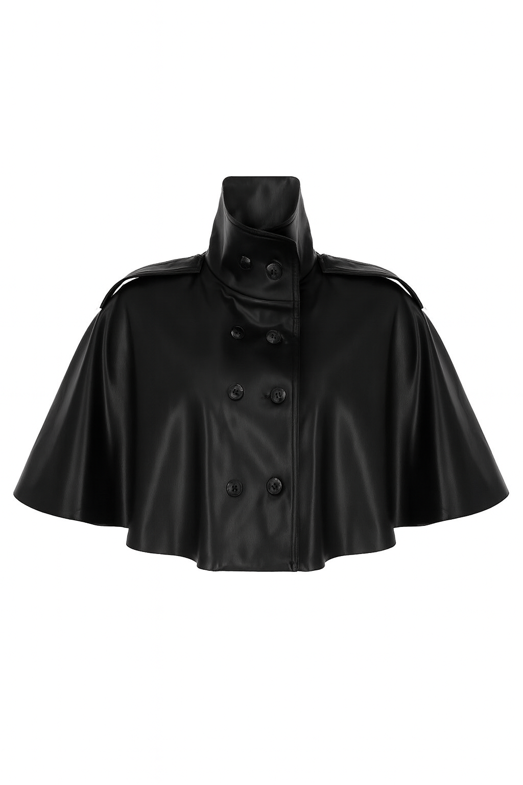 SELMACILEK Siyah Crop Düğme Detaylı Vegan Deri Ceket FW25/26 koleksiyonu için elle dikilmiştir.