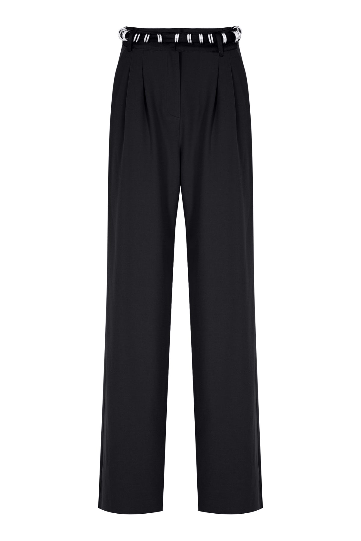 SELMACILEK Siyah Beli Aksesuar Detaylı Pantolon FW25/26 koleksiyonu için elle dikilmiştir.