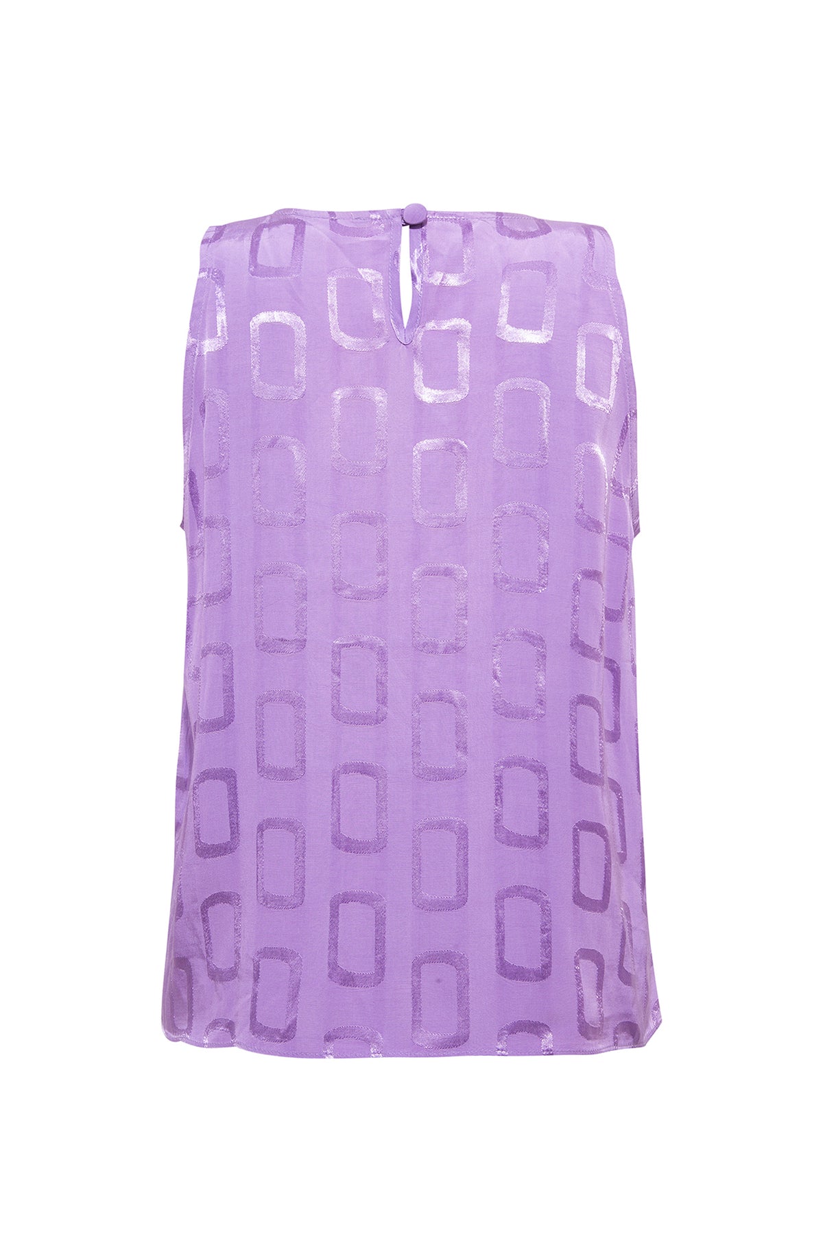 SELMACILEK Mor Desenli Rahat Üst SS24 koleksiyonu için elle dikilmiştir.