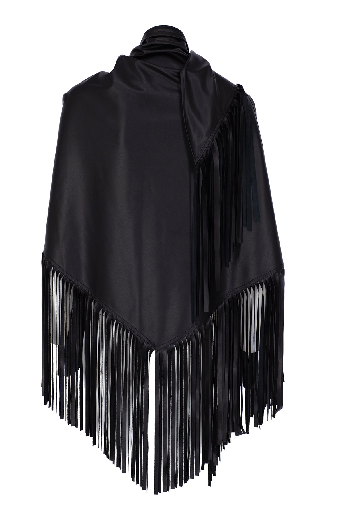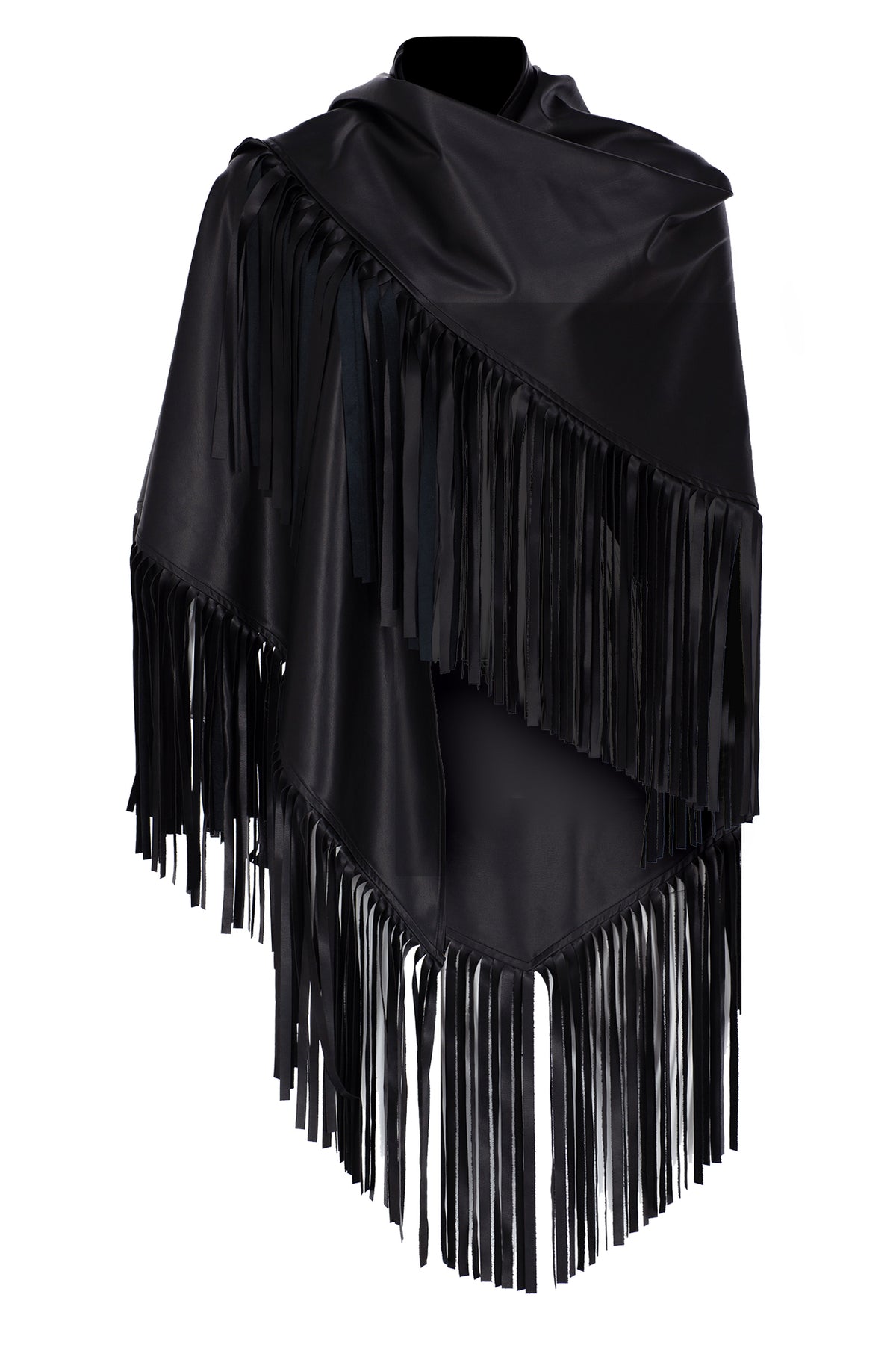SELMACILEK Siyah Vegan Deri Püsküllü Şal FW25/26 koleksiyonu için elle dikilmiştir.