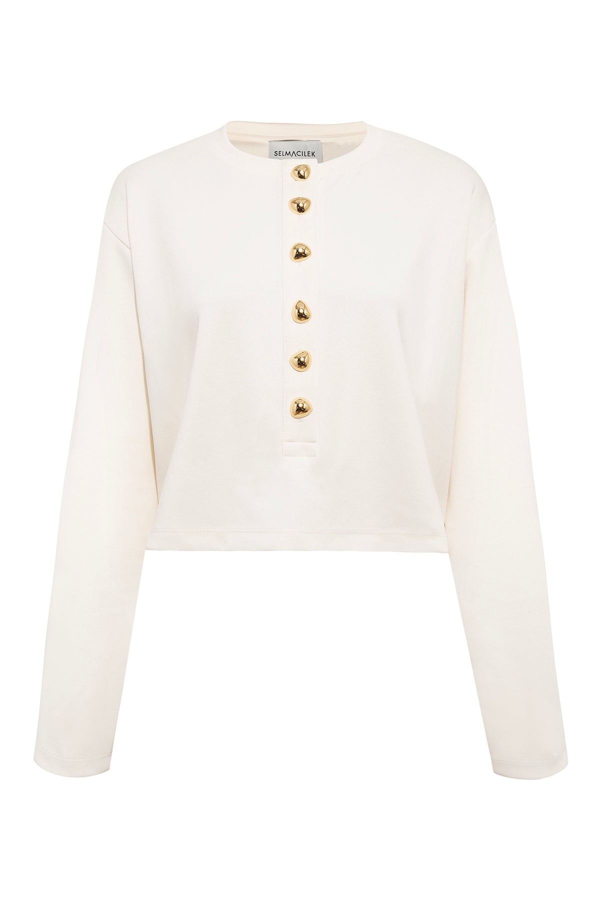 SELMACILEK Ekru Uzun Kollu Tişört İlkbahar/Yaz 2025 koleksiyonu için elle dikilmiştir.